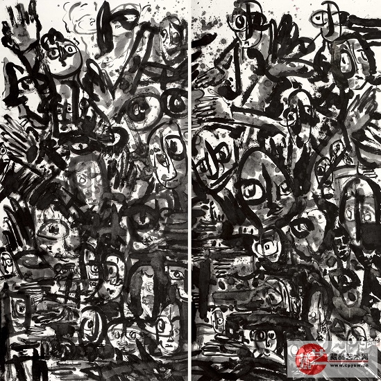 娄濛 ROCK重金属系列 136×68cm×2 纸本水墨 2019年