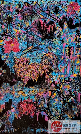 娄濛 高级世界系列 180×97 纸本彩墨 2017年