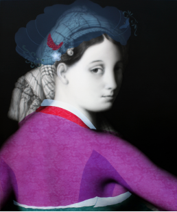 在他的“Old Future”系列作品中,艺术家使用喷枪在各种感性背景中描绘同一主题,画作几乎如摄影一般逼真。他描绘了一个幻想——幻想中,一个女人穿着传统韩服,而这正反映了艺术家的自我。