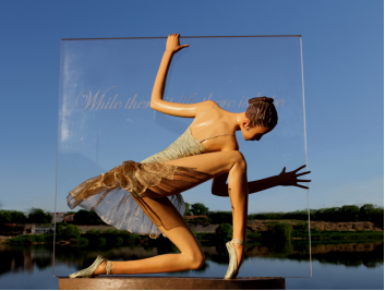 章华(b.1964)的雕塑作品清新而优雅。艺术家利用道具和延伸的造型来加强空间叙事张力。凭借着清晰流畅的线条,他创造了极具感染力的视觉印象——作品角色飞向理想之境。轻盈的人物形象,年轻的面庞和灵活的肢体动作无不代表着希望,热情满溢奔向未来,相信梦想终会成真。