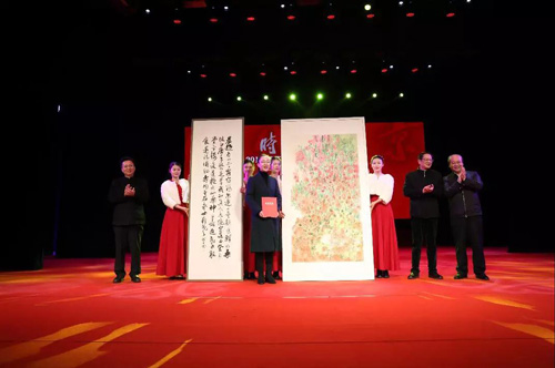 尉天池、赵绪成、倪同芳、方标军、徐昕、周京新、徐惠泉,徐利明、毕宝祥、陈国欢共同为参展艺术家代表颁发参展证书。省艺研会理事赵彦国、张平静分别创作了一幅书法作品和美术作品捐赠给省现代美术馆。省艺研会常务副会长杨企鹏、作者代表张平静捐赠作品,刘旭东、王建接受捐赠。