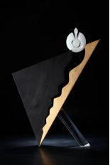 从玉文化传统出发,具有思辨性和当代性的作品有蒋喜的《决断》。作品采用最为古老的玉玦与法槌结合,无论是采用两个不相干的元素结合演绎出“决断”这个传统内涵,又赋予“礼法共治”的当代内涵和政治学思考,还是在夸张的底座表现形式方面,给观者留下不少思考,都反映了该作属于现代主义艺术创作的范畴。