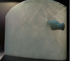 行业内传统和当代玉本体创作作品特别稀少,难能可贵的是本展恰恰还是一个重点。何马的《假柚》采用超现实主义艺术手法,表现了“玉以玉雕”“石以石雕”的玉石本体内涵。庞然的《德厚永昌牌》用玉的内涵(德)、空间(厚)、时间(永)和最后的结果(昌),表达了自我完善的过程。聂子翔的《絜德珮》、《千金一诺牌》从传统玉德出发,诠释玉的信德和絜德的内涵,纯粹、准确,并小中见大、耐人寻味。张庚的《浓情蜜意》“巧克力”也打了玉石细腻、坚韧的牌。苗烈的《知识就是力量》系列,诠释从古到今的知识观,并以方柄为廉、尖刃为锐、锐廉不忮,彰显了作品的絜德之力,也是君子之力。