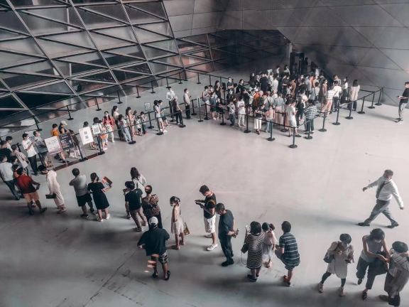 当晚,两馆首推全新slogan“未来由此发生”,希望每一位观众来到这里,不仅是观看者,而是成为“艺术发生”的参与者。在此场域下,以“因为爱才艺术”为主题,通过提前线上预约,现场免费看展,艺术装置快闪互动,首发特别会员卡福利,文创产品展示等方式早早就吸引了市民和游客前来排队,与此同时,现场也在有序开展防疫相关工作。
