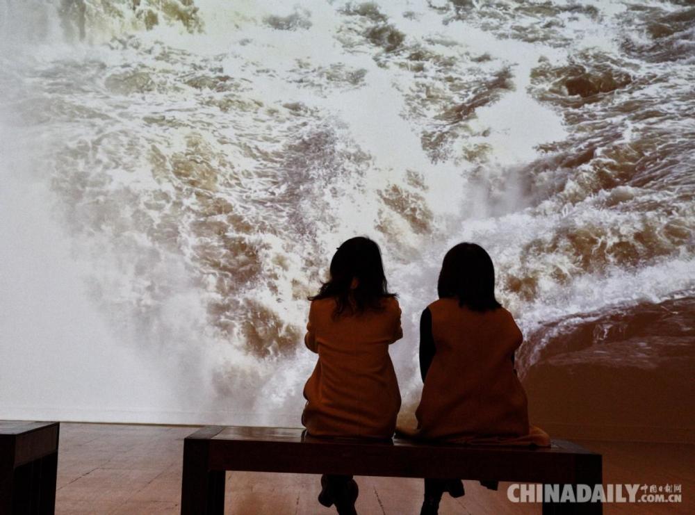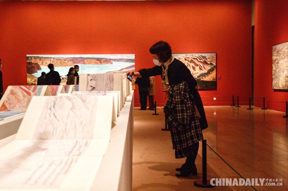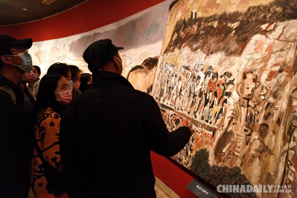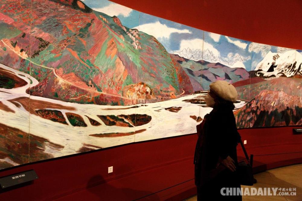 10月15日,观众在中国美术馆参观“黄河魂 赤子心——王克举百米油画长卷展”。(中国日报记者 姜东 摄)