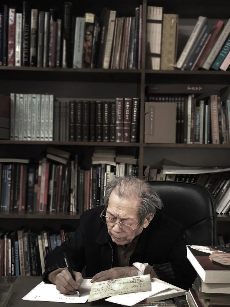 钟涵先生在家中写作品交接清单