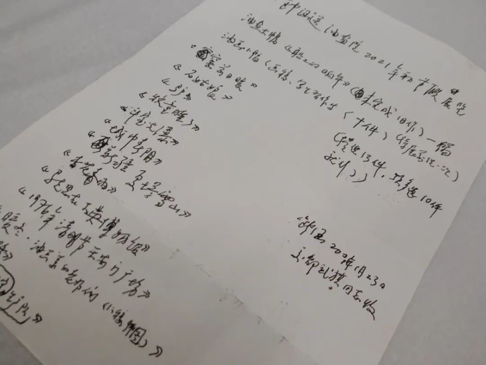 钟涵先生手写的作品交接清单