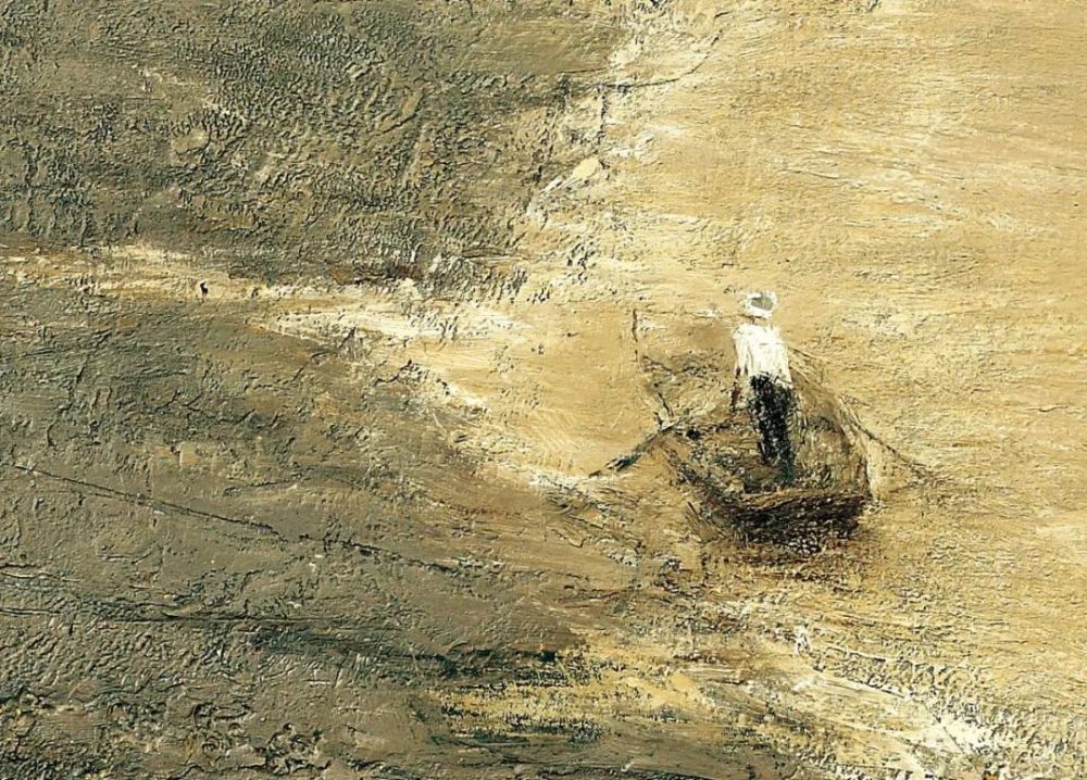 钟涵先生曾无数次风尘仆仆深入黄土高原地区,把心血倾注在滚滚黄河、纤夫之路上,他浑厚、质朴的画面中不仅流露出富有诗人气质的哲思,更体现出他精研中西文化之后,对油画本土精神所作出的追求。