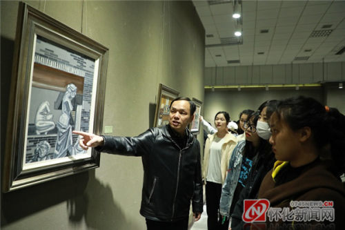 在怀化学院易图境美术馆内,前来参观画展的学生络绎不绝,学生们纷纷拿出手机拍照,并与油画作品合影留念。"参观完画展之后,我感觉乔老师的画很"单纯,没有"浮躁的感觉,值得我在以后的绘画生涯中好好学习。"怀化学院美术与设计艺术学院美术学专业2020级学生刘洋林说道。