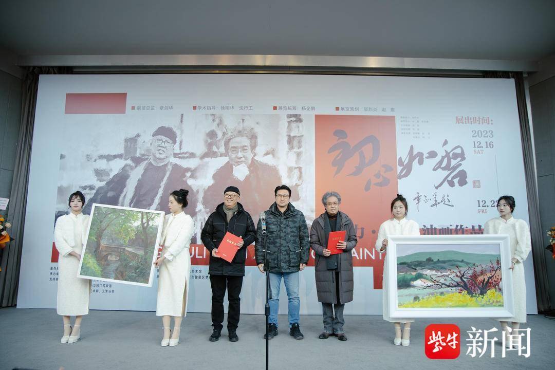 崔雄对恩师的答谢同样动人心弦。他说:1991年,时任南京艺术学院院长的冯健亲老师将我从南通调回南艺工作,至今已30多年,冯院长给了我学习、工作的平台,让我有为母校服务的机会,谢谢冯院长成就了我。在南艺工作期间,我有幸成为沈行工老师的硕士生,他是我从小崇拜的偶像。沈老师对我专业上的影响无与伦比,我今天参展的作品都经过沈老师的悉心指导,他提升了我的艺术理念,增强了我对画面变化的掌控能力,谢谢沈行工老师及夫人诸雷老师的厚爱!