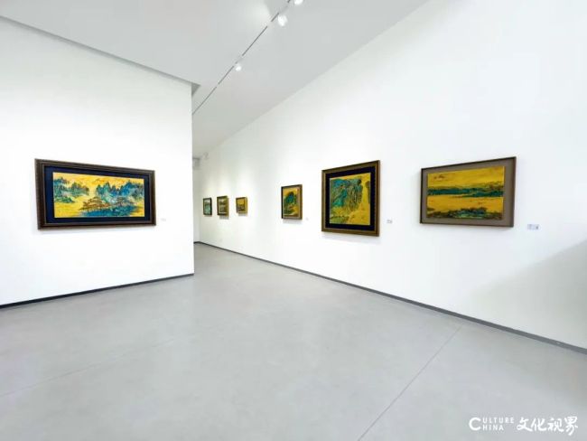 她的画面具有独特的光感与层次,青绿与金碧在笔触间交织流转,仿佛在呼吸。她以油彩重塑山水,使古老的青绿在当代语境中获得新的生命力。画面中的山川、云气与流光,不仅是自然的再现,更是精神的栖居之地,传递出东方美学特有的宁静与超然。