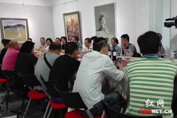 “艺义——中国70油画公社作品展”在湖南国画馆开幕,艺术家们就相关作品进行深入探讨和交流。 红网长沙6月11日讯(通讯员 屈洁 时刻新闻记者 汤红辉)今日,由湖南国画馆主办,湖南国鼎文化传播有限公司承办的“艺义——中国70油画公社作品展”在湖南国画馆开幕,这是70油画公社青年画家的作品首次在长沙公开亮相。 70油画公社是当代70后画家的组织,此次展览共展出了李谟中、胡强、孟新宇、李猛、李晓伟、郝雪鹏、李洪震、许章伟、梁智龙、汪鹏飞、张春华、陈光龙、李永光、王永昌、沈磊、沈水明、靳其涛等艺术家的油画作品51幅。 70后艺术家是在中国特殊的艺术环境里成长起来的,他们的艺术基因中既有传统艺术的理想和崇高,又有现代艺术的自由和真诚,更有当代艺术的批判与逆反。此次展出的作品,展现出了他们艺术独立和自由的本质。 展览将持续至18日结束,免费向市民开放。