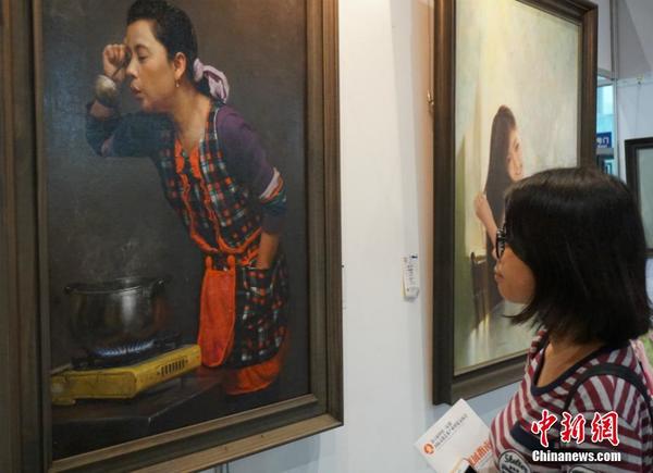 10月20日,“惟美无界——当代朝鲜油画精品巡展”亮相在江苏无锡举行的第六届中国(无锡)国际文化艺术产业博览交易会,据悉,展出的215幅朝鲜油画作品大多出自朝鲜人民艺术家、功勋艺术家之手,既有反映朝鲜风光,也有朝鲜人物,吸引了众多观展市民的目光。 孙权 摄
