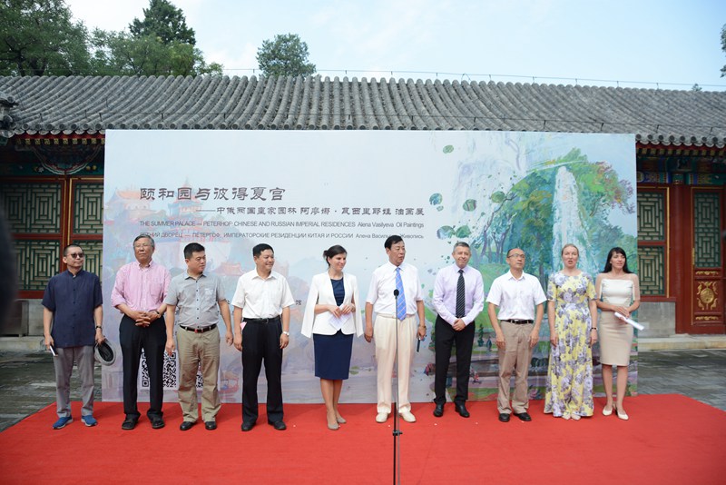 颐和园园长刘耀忠在开幕式致辞中说,颐和园和彼得夏宫两座皇家园林虽然相距遥远,风格迥异,但它们都代表了18世纪皇家园林的精髓,都被联合国教科文组织列为世界非物质文化遗产。今年9月份,颐和园将与彼得夏宫正式建立友好合作关系,此次画展是两家园林博物馆首次联合举办的项目。