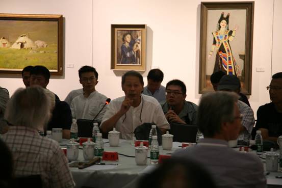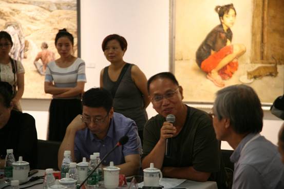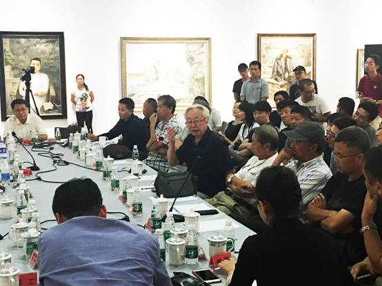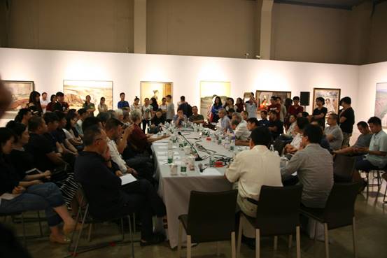中国精神——第四届中国油画展——真像——中国油画院站是这次展览的最后一站收官展,在开幕式结束后又在中国油画院美术馆展厅内同业界人士举行了学术座谈会议。研讨会由殷双喜、郑工作为学术主持,出席会议的有:钟涵、闻立鹏、赵友萍、潘仕勋、刘秉江、孙为民、苏高礼、张祖英、刘仁杰、曹新林、俞晓夫、艾轩、杨飞云、张元、孙向阳、孙立新、骆根兴、王宏剑、、贺丹、张冬峰、陈世宁、杨参军、刘建平、芃芃、姚永、李贵君、马琳、朱春林、孙文刚等具中国当代写实油画的新发展与研究进行了深入的探讨与交流。