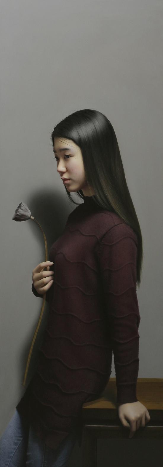 因此,张青的作品散发着清纯、自然、宁静的气息,这些客观对象给予画家温暖、安详的感受,他的情绪注入了超写实绘画,无数相关的生活感受和细节把握被刻入了画中,无怪乎,张青绘画给人的视觉冲击中,带有浓郁的生活原味、岁月静好的缅怀感以及清纯娴静的东方美。