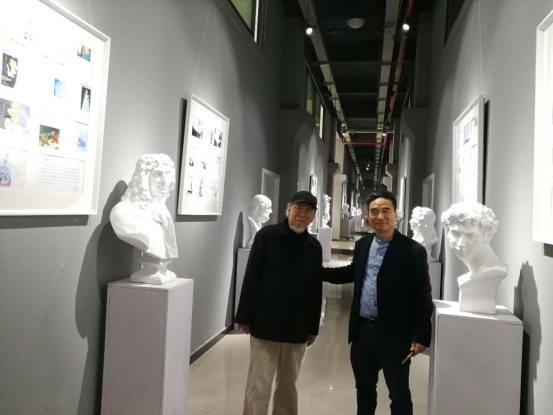 黄作林(右)向苏高礼介绍重师美院新展厅