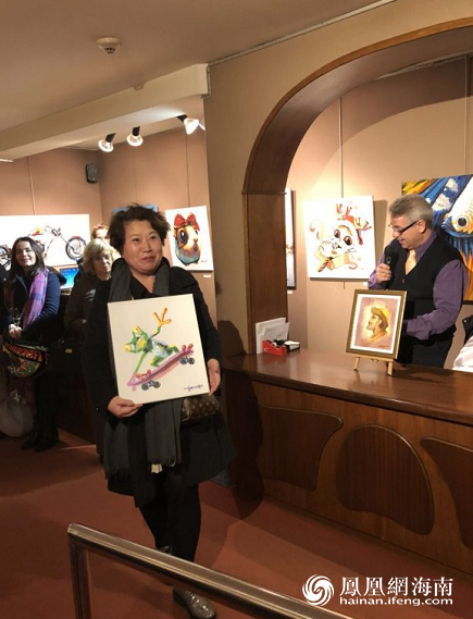 在接下来的抽奖环节中,西班牙籍华侨--小提琴家吴云女士幸运中到一幅新概念小动物油画。她表述自己多年在西班牙交响乐团和音乐学院授课,从不参加除音乐之外的其它任何活动。今天是被朋友游说,告知本次油画展是关于中国京剧主题,才决定来一睹芳容并有幸中奖。她说自己虽然不懂油画,但艺术是相通的。京剧油画的魅力勾起了她对中国国粹的热爱和向往,心由画生,情不自禁。她爱巴塞罗那,更爱北京。她感谢画家!感谢京剧油画!让她和西班牙更亲,让她离中国更近。