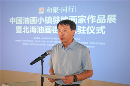 8月14日上午9时,“和聚·同行”——中国油画小镇驻地画家作品展开幕式暨北海油画街区入驻仪式在威海市环翠区孙家疃街道办中国油画小镇国际博览交易中心隆重举行。威海市文联主席张建岭、市文广新局副局长于建新、环翠区委常委、宣传部长孙军、环翠区文广新局局长林森,以及艺术家代表、文化企业负责人、书画爱好者共计百余人参加了入驻仪式,环翠区孙家疃街道党工委书记刘兆垒主持仪式。
