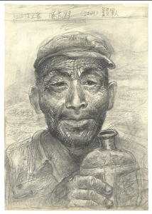 1965年,在四川美术学院附中读二年级的罗中立,来到了离家200多里的大巴山支教,住进邓开选老人家里。这位房东大爷就是油画《父亲》的创作原型。1975年的除夕夜,罗中立在路边公共厕所附近看到一位收粪的农民,他那种双手插在袖中蜷曲在墙边的僵硬姿态、呆滞麻木的神态与旁人热闹喜悦的气氛形成了巨大反差。这个场景触动了他,激发了他对农民题材表现的渴望。一个多星期的时间,收粪老农在草图上呈现。