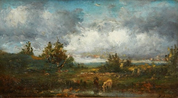 图片说明:《河边饮水》,儒勒·杜普雷,木板油画