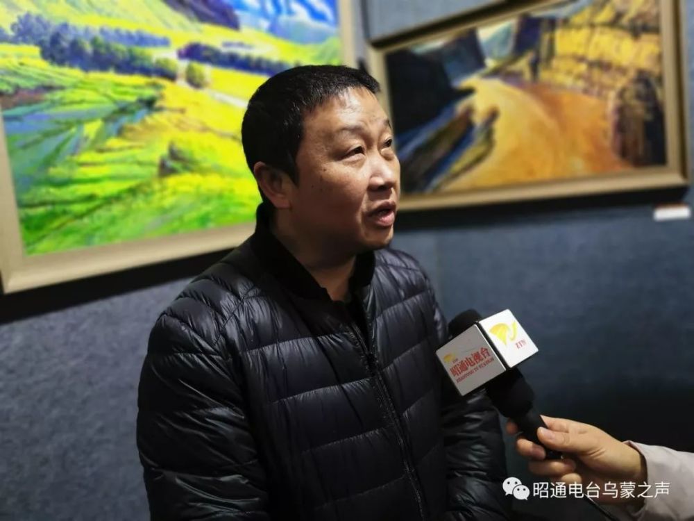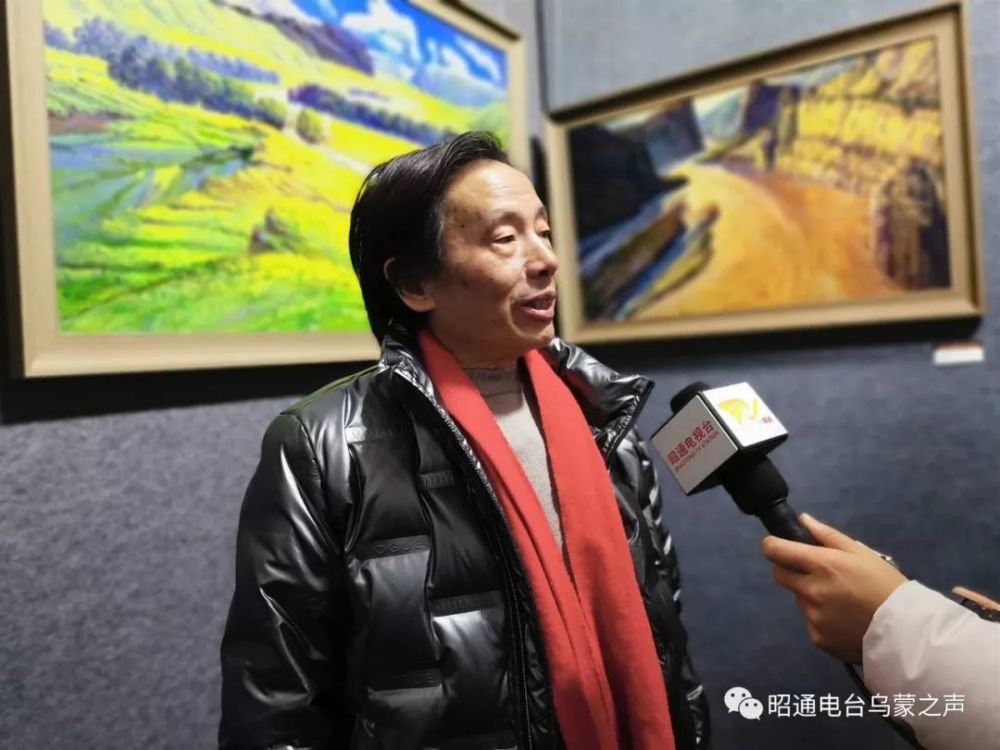 云南开明画院副院长、开明文学院副院长傅泽刚:“一个人不管你走到什么地方、走多远,故乡都是装在心里的,他是我们骨子里边的、内心的一种文化基因。回到故乡是我的一个愿望,很多年的愿望,这次终于实现了,带来了风景画,是想表达一种故乡的情怀,也想和昭通的同行、社会各阶层进行文化上的交流。”