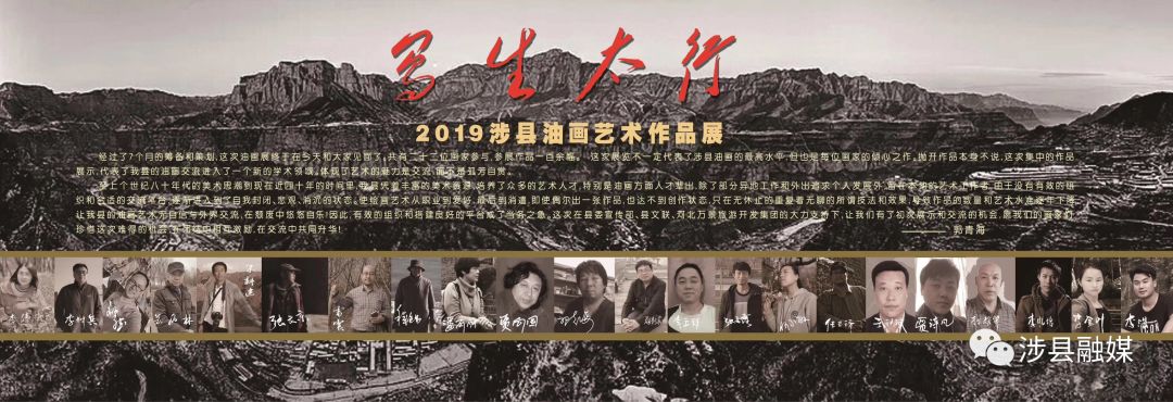 丹青吐秀碧绿前 墨彩飘香咫尺间 2019年12月29日 “ 写生太行 ” 涉县油画艺术作品展开幕喽 此次油画展在赤水湾大酒店举办,由县委宣传部主办,展览主题为“不忘初心 情系太行”,展览时间从2019年12月29日到2020年1月15日。 该画展是涉县第一次纯油画展览,共展出了涉县22位画家93幅作品。作品内容涵盖风景、人物、静物,从不同侧面展现了我县的风土人情,具有浓厚的乡村气息。 开幕式上,写生太行组委会主席郭青海还将自己创作《赤水湾写生图》送给县美术馆收藏。 油画组委会主席郭青海 这次展览是涉县有史以来第一次油画展,原来没有这个平台,这些油画家有了这些时间,有了创作心情,从今年七月份咱们组织到一块,互相交流,在油画技法或者艺术水准上能互相借鉴学习。 写生太行油画展吸引了众多书画爱好者到场参观。大家在一幅幅油画前驻足观看,仔细揣摩。 风里雨里 我在赤水湾等你