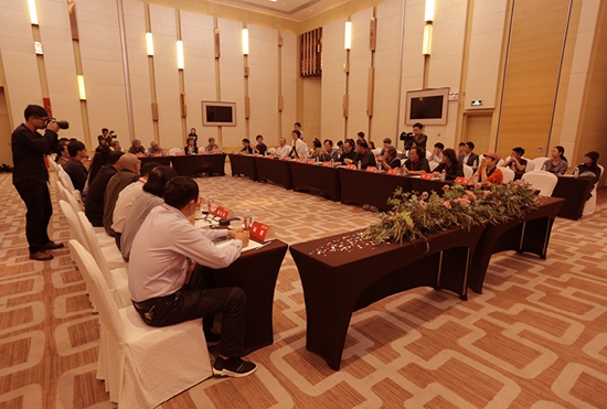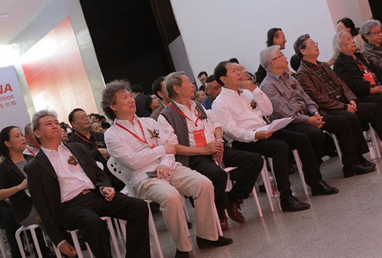出席展览开幕式的有中国美术家协会副主席、广东省文联主席、广东画院院长许钦松,中国美术家协会壁画艺委会名誉主任李化吉,中国美术家协会壁画艺委会主任唐小禾,广州美术学院院长、广东省美协主席李劲堃,中国美术家协会漆画艺委会名誉主任冯健亲,中国美协壁画艺委会副主任刘秉江,湖北省宜昌市政协主席李亚隆,中国美术家协会理论委员会副主任、《美术》杂志主编尚辉,香港美术家协会副主席朱达诚,广州美术学院党委副书记、广东省美协副主席黄启明,广州美术学院副院长吴卫光,广州美术学院副院长、广东省美协副主席林蓝,伟祺玻璃建材有限公司董事长李伟达,著名艺术家程犁、郑爽、黄奇士、黄力生、周海歌、朱明健、万小宁,中国美协壁画艺委会秘书长孙韬以及中国美协壁画艺委会各位委员:湖北省美术学院陈人钰先生、中央美术学院杜飞教授、清华大学美术学院郗海飞教授、中国美院张敏杰教授、南京艺术学院张静教授、山东艺术学院唐鸣岳教授、上海美术学院杨清泉教授、宁夏美协副主席王印泉先生。中国壁画学会副会长、鲁迅美院陈建军教授,四川美术学院中国画学院院长黄山教授,西安美术学院特教学院院长秦东教授、李玉健书记,中央美术学院李辰教授,陕西历史博物馆蔡昌林先生,西南民族大学李耘燕教授,中国艺术研究院美研所谷泉副研究员,中国美术家协会赵昆副研究员等各院校及研究院所的专家。开幕式由广州美术学院教授,本次展览的策展人齐喆主持。