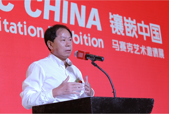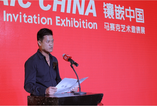 本次展览的承办方之一——伟祺玻璃建材有限公司董事长李伟达先生在致辞中对中国美协壁画艺委会的信任与广州美术学院的鼎力支持表示感谢,使得这次中国具有开拓性意义的马赛克镶嵌艺术展得以举办。他感谢了唐小禾先生、冯健亲先生为企业创造了提高马赛克艺术的机会,把企业推上一个更有高度的舞台,感谢了策展人齐喆教授和他的团队,感谢了伟褀公司为作品付出辛劳汗水的主创团队和工艺师。希望通过此次展览,能推广镶嵌艺术在中国的普及和应用。他恳请艺术界各位专家、学者、教授不吝批评和指正,希望在今后的合作中进一步提高镶嵌艺术水平,实现新的跨越。伟褀企业有决心把中国的镶嵌艺术推到一个新的高度,站上国际镶嵌艺术的舞台。