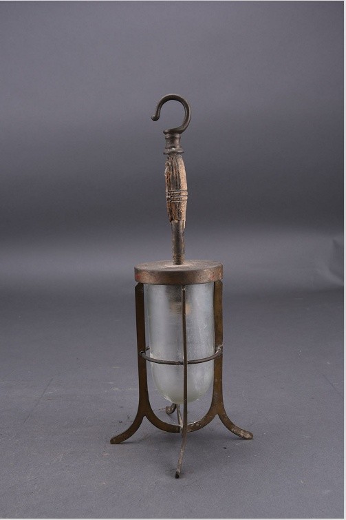 中山舰出水木柄曲钩船用灯。江汉关博物馆供图