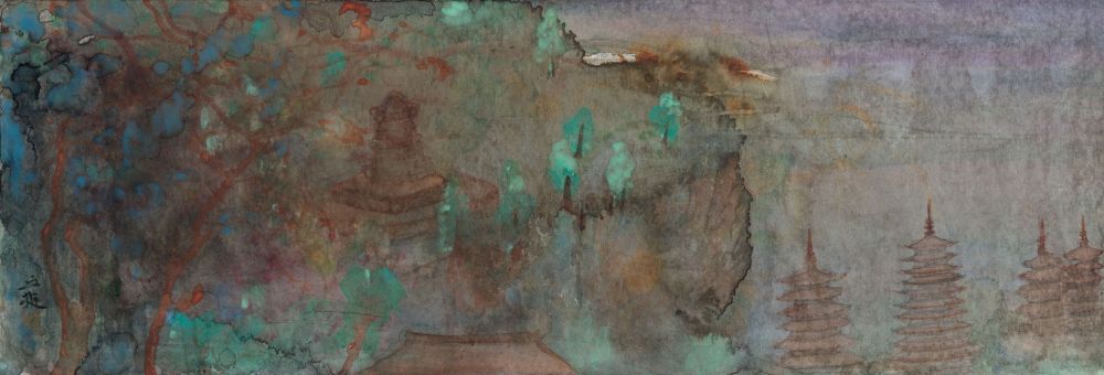 银山塔林,银笺设色,34cm×100cm,2021年