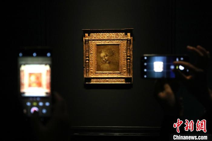 达·芬奇真迹《头发飘逸的女子》在上海博物馆展出。 中新网记者 张亨伟 摄