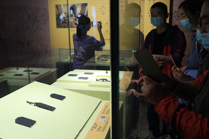 观众观看曹操墓出土文物。