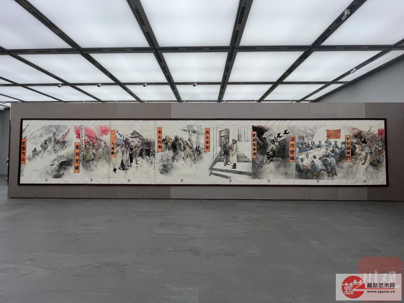 6月18日上午,由四川省文学艺术界联合会和海南省文学艺术界联合会主办的“信仰的红色印记——李福顺一百八十米书画长卷展”在四川美术馆开幕。参展作品《信仰的红色印记》由海南省文联副主席李福顺创作,画作长达180米,高2米,共104个画面,占据四川美术馆一层两个展厅的空间。