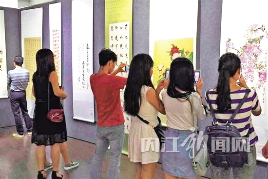 6月28日,市政协庆祝建党95周年暨市政协书画院成立26周年书画作品展在张大千美术馆开幕。此次活动邀请到了著名书画家邱笑秋、刘政权等参加,共有120幅作品参展,包括国画、油画、书法、篆刻等艺术作品。 记者在书画作品展厅看到,前来观展的人很多,不少市民一边认真品味书画作品,一边还不忘掏出手机拍照留念。此次展出的书画作品体裁丰富、形式多样,有水墨油彩、写意工笔、隶书行草、颜体欧骨,而且风格十分鲜明,或刚毅道劲,或飘逸灵秀,或气贯长虹,或行云流水……这些作品充分展现了书画艺术家和爱好者们对传统技法的继承和个人的独特创新,融贯了他们对自然、社会、生活的独到见解。 “你看,这幅画的笔墨用得很到位,为完成这幅作品作者肯定花了不少时间和心思。”来自内江师范学院的大三学生李芸说,她从小就喜欢画画,希望通过欣赏大师们的画作后,能对自己的画画水平有所提升。 据悉,举办此次展览,旨在通过各类书画等艺术形式,讴歌社会的巨大发展变化,讴歌人民的幸福生活,牢记中国共产党的辉煌历史,激发全市人民为建设幸福美丽内江而团结奋斗。此次展览从6月28日起,将一直持续到7月6日。(内江日报全媒体记者 邬丹)