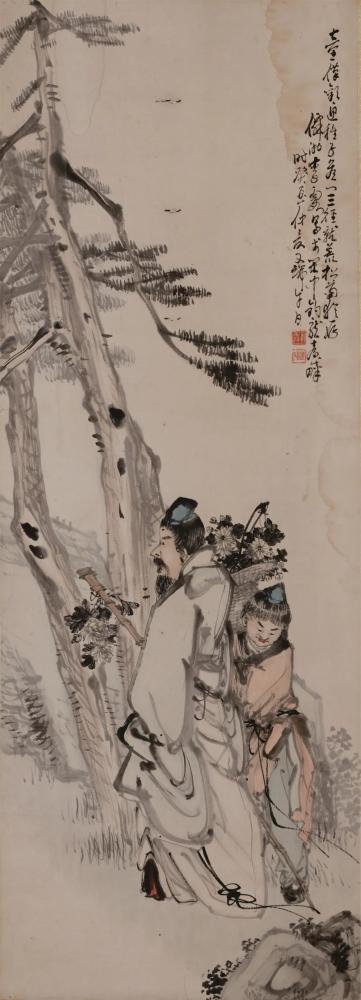 李霞 采菊 纸本设色121cm×42.5cm 1913年