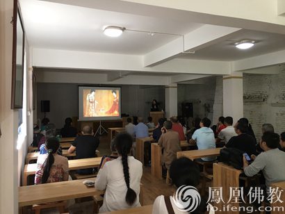 | 贾霞讲解中国画的人物造型特征(图片来源:凤凰佛教摄影:于椿根)贾霞讲解创作历程(图片来源:凤凰佛教摄影:于椿根)罗宗贵讲解作品《家山图》(图片来源..