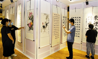 | 昨日,“翰墨书香——赞美美好生活”主题书画展在北辰区大张庄镇综合文体中心举行。近百幅歌颂祖国、讴歌新时代、展现家乡之美的书画作品进行了集中展示。本..