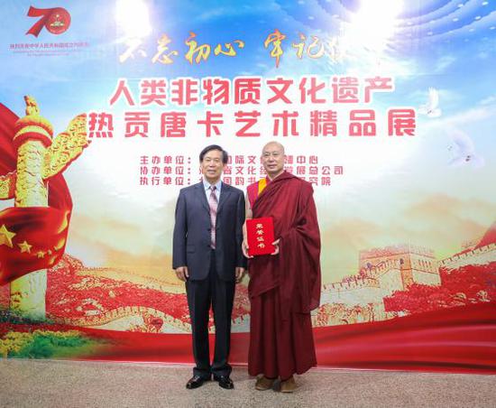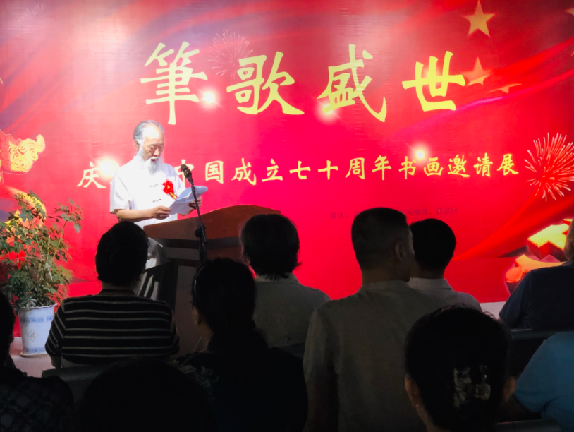 | 为庆祝中华人民共和国成立70周年,由中国国际文化传播中心主办的国际书画展于8月16日在民族文化宫展览馆隆重开幕。中国国际文化传播中心领导、党政军领导、书..